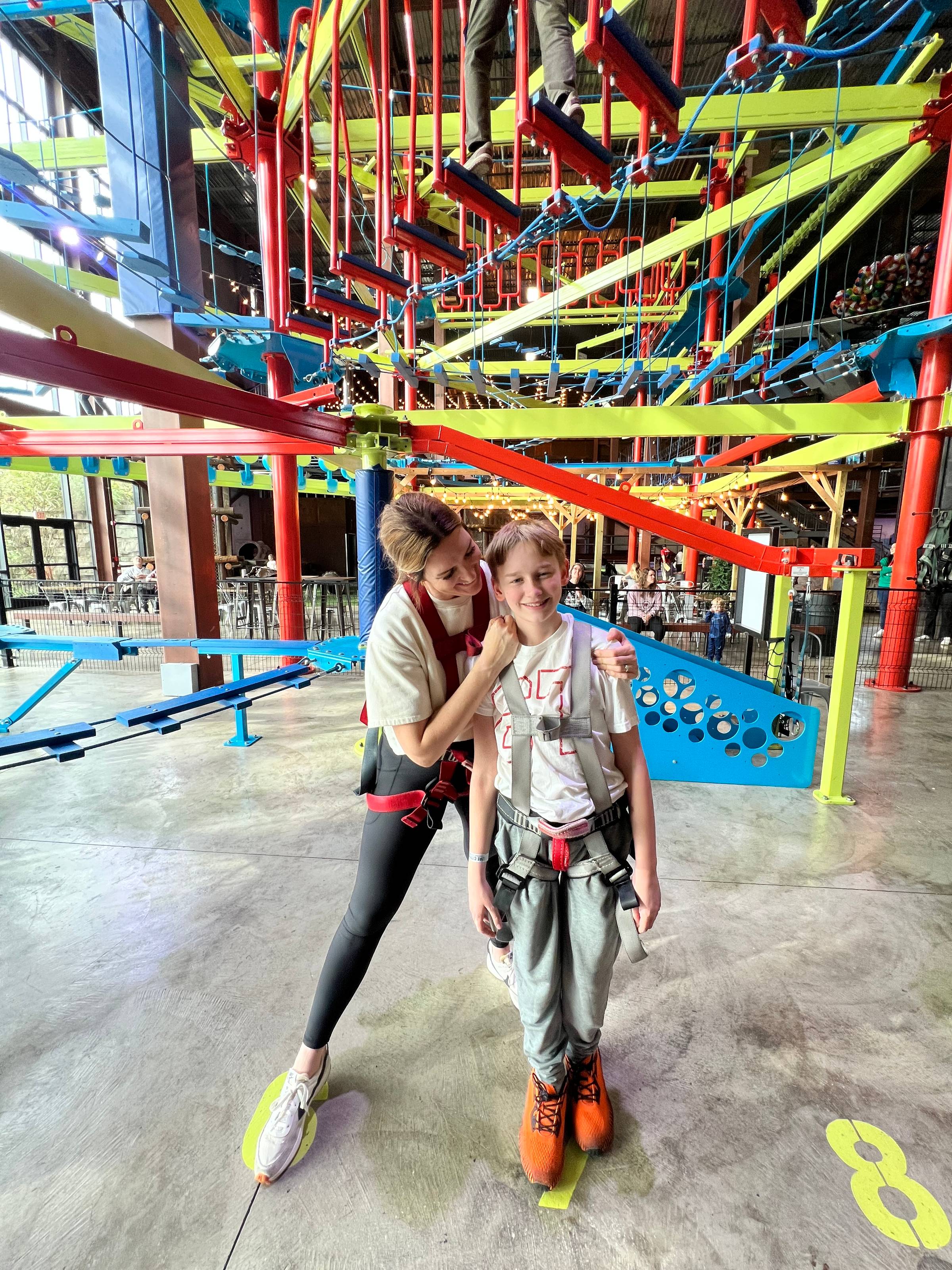 Got to take my 13-year-old manboy on his birthday scavenger hunt Friday. We've done this zipline rope course three years in a row and it is SO much fun. I love you, Bud!